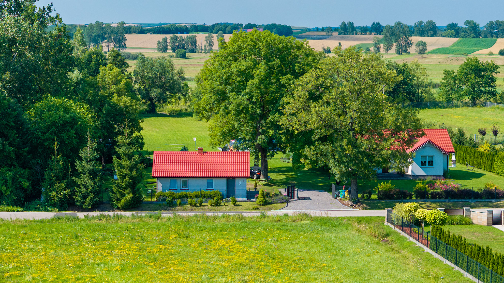 Nasze domy położone są w Wiśniówkach – małej, urokliwej miejscowości na Ponidziu, zaledwie kilka minut od zabytkowej Wiślicy. To idealne miejsce dla tych, którzy pragną odpocząć od zgiełku miasta i zanurzyć się w ciszy, naturze i prawdziwej polskiej wsi. Otaczają nas łąki, pola, ścieżki rowerowe i zakątki przyrody, które zachwycają o każdej porze roku.
